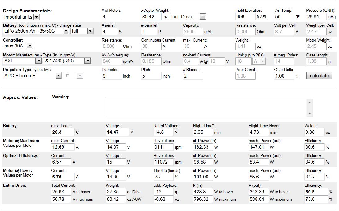 Hover Amps = 75A (Hover Throttle balance not good on 75% Throttle Stick)