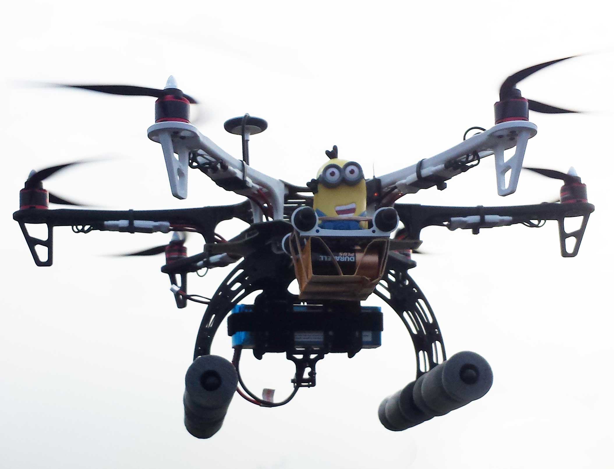 I located the TX, the GPS, the GoPro, and the two RX antennas as far apart as I could. Hence the jib sticking out the back for the Video Tx.