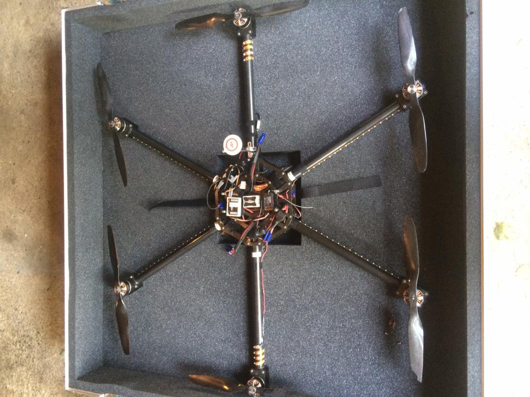 1). Flat octo, CF 1000 mm custom frame; T-motor 4014 400kv; T-motor 30A ESC Pro; T-motor 14*4.8 CF props; Pulse 10000 mah 6S battery