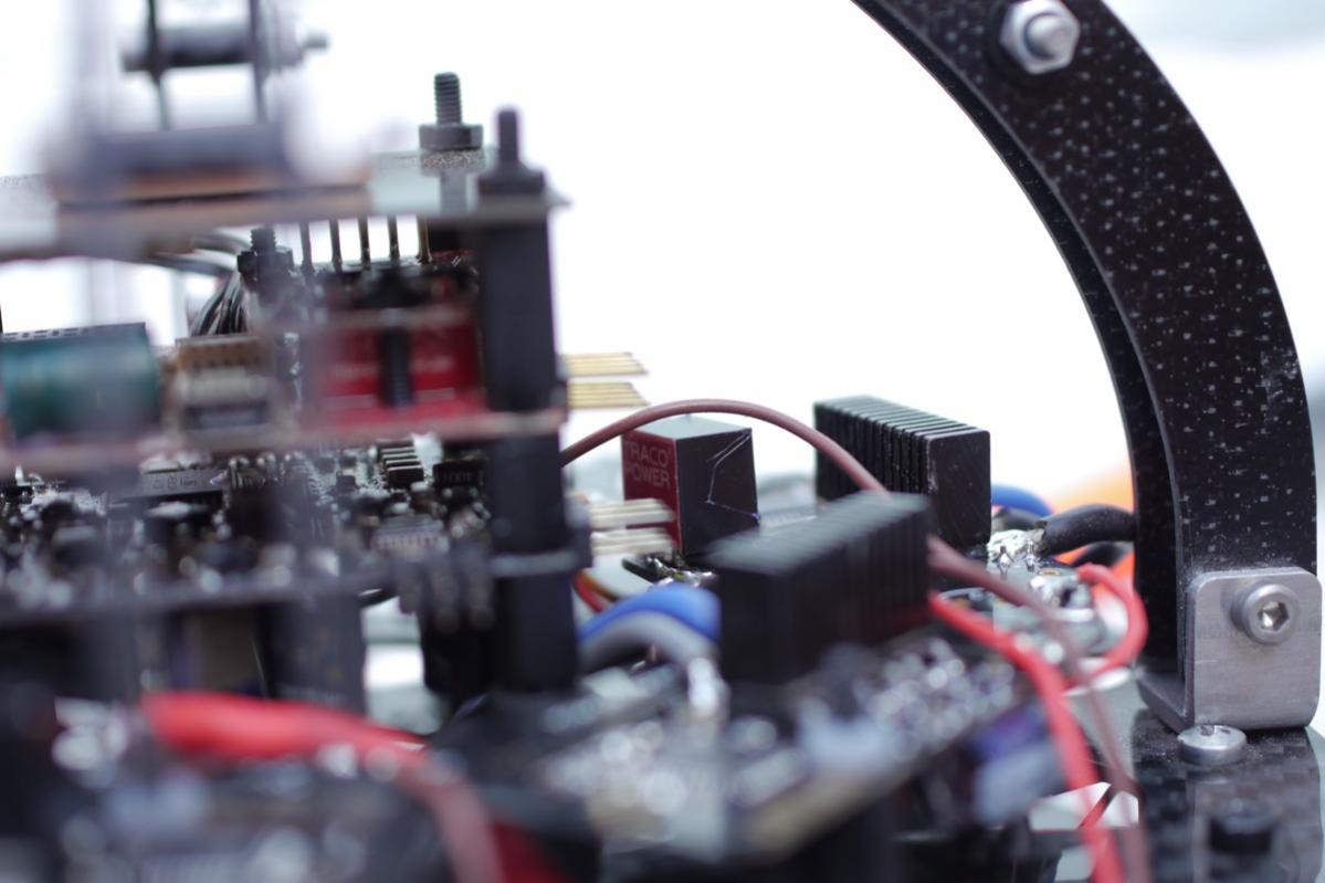 Basically on this frame , I first have the IMU on a mounting plate , then above this on another mounting plate raised with nylon pillars sits the MC .