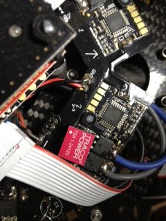 While I was outside, unable to get a GPS lock, I picked up the IMU (after removing the mounting tape) and held it away from the multi. What you know I went from 3 blinking lights to no blinking lights after about 15 seconds. I then pulled the battery, placed the IMU back under the GPS and plugged back in the battery. Back to blinking lights. Move the IMU, I get GPS lock. So, I went back inside, reconfigured a few things and mounted the IMU on the top of the center plate at the front of the multi. I cleaned up, placed on the dome and went back outside and plugged her in. GPS lock in about 30 seconds.