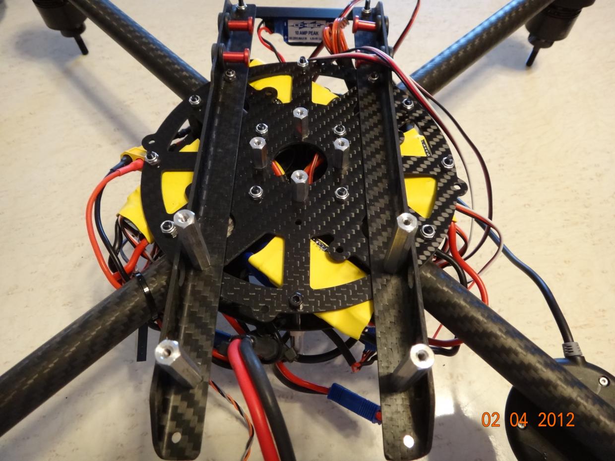 This is the solution that didn't work. What you can't see is that the IMU is mounted under the bottom copper plate on the G10 plate (only a few cm away from the GPS).